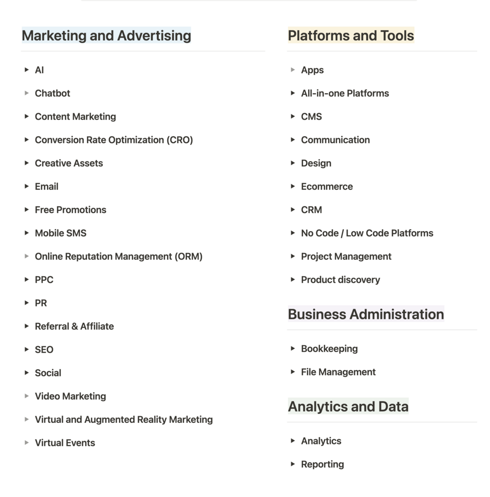 The template includes a wide variety of tools, including those for social media management, email marketing, analytics, and more. Each product suggestion has been carefully evaluated to ensure that it is both effective and easy to use.